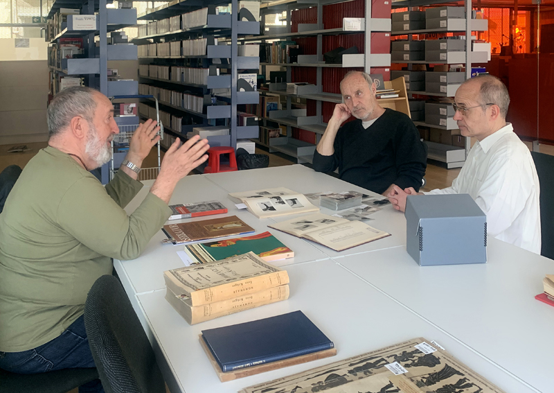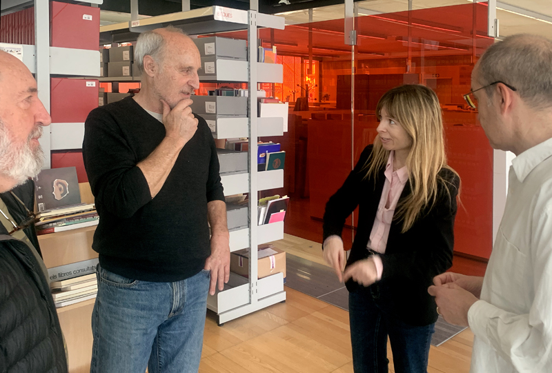 Gustau Molas, Paco Mir, Antoni Serés i Cristina Sanchís a l’arxiu del Departament de Cultura Popular i Associacionisme Cultural. © Norbert Foto.