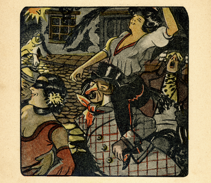 Les escenes modernes d’al·legoria del mes de febrer, deixen de banda les representacions zodiacals de Peixos i les feines del camp de poda dels arbres i les vinyes. Ara passen a ser escenes de Carnaval, representant persones amb màscares i disfresses, i en aquest cas, en un espai urbà.