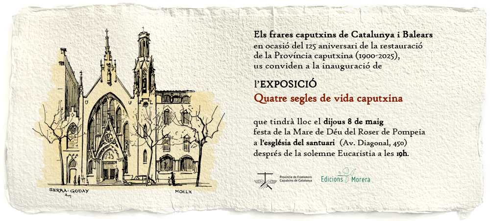 Dijous 8 de maig s’inaugurarà l’exposició Quatre segles de vida caputxina a l’esglèsia del santuari de Pompeia (Avinguda Diagonal, 450 a Barcelona). La mostra està produïda per Edicions Morera i comissariada per fra Valentí Serra de Manresa, historiador i arxiver dels caputxins.