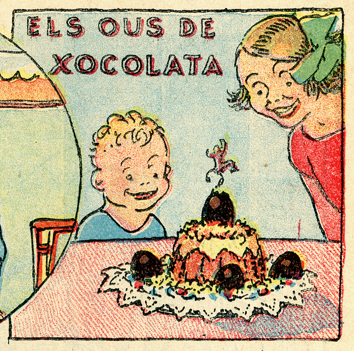 “En aquesta dècada dels anys vint van aparèixer els primers ous de xocolata fets amb motllos metàl·lics que arribaven de França (tot i que aviat se’n van afaiçonar aquí). Sembla que els primers a fer-ne van ser els de la pastisseria Massana del carrer Ferran. De seguida van arribar també motllos que representaven gallines i conills i, seguint la dèria, algunes figures fetes amb crocant es van començar a banyar amb xocolata, sobretot casetes, carros i qualsevol altra cosa singular segons la traça del pastisser.